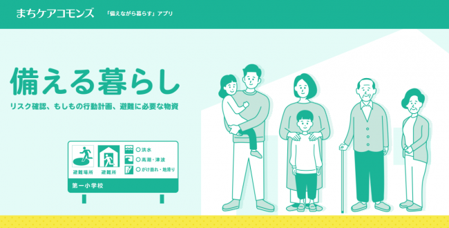 「まちケアコモンズ」は、平成30年7月豪雨の被災地支援をきっかけに作られた、防災に役立つオープンデータを活用した「備える暮らし」を提案するアプリ。