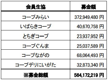 コープデリ生活協同組合連合会(埼玉県さいたま市、土屋敏夫理事長)に加盟する会員6生協(コープみらい・いばらきコープ・とちぎコープ・コープぐんま・コープながの・コープデリにいがた)は、3月3日(木)から4月10日(日)まで、コープデリ全150店舗と宅配サービス、組合員施設のコーププラザで「ウクライナ緊急支援募金」を実施し、総額5億6417万2219円の募金が寄せられたと発表した。