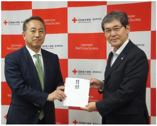 顧客からの募金456万2297円とヤマナカが販売した有料レジ袋の収益金43万7703円を合わせて、計500万円を日本赤十字社愛知県支部に寄託した。