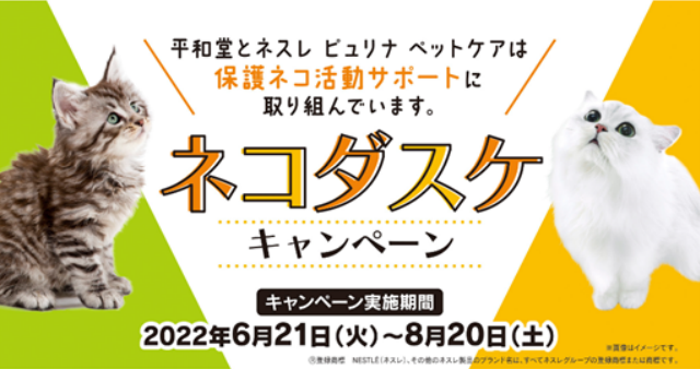 (株)平和堂(滋賀県彦根市、平松正嗣社長)は、ネスレ日本(株) ネスレ ピュリナ ペットケアの協力のもと、6月21日(火)から8月20日(土)まで、「ネコダスケキャンペーン」を開催する。