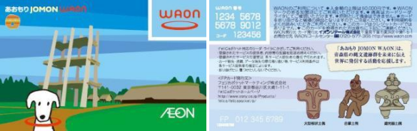 その取り組みの一環として、2011年4月に「あおもりJOMON WAON」カードを発行し、利用金額の一部は青森県に寄付され、青森県の縄文遺跡群を未来に伝え、世界に発信する活動に活用されている。