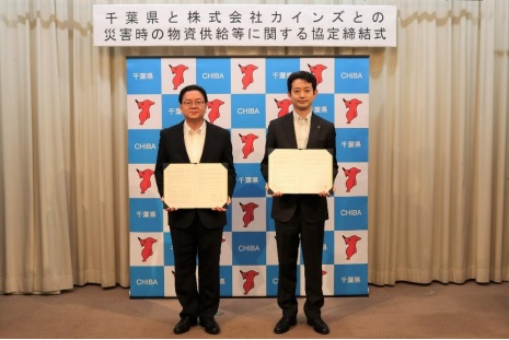 (株)カインズ(埼玉県本庄市、高家正行社長)は7月15日(金)、千葉県と「災害時の物資供給等に関する協定」を締結した。同協定は、両者が地震・風水害その他災害発生時に被災住民等を救助するための物資の調達や、供給等について定めたもの。