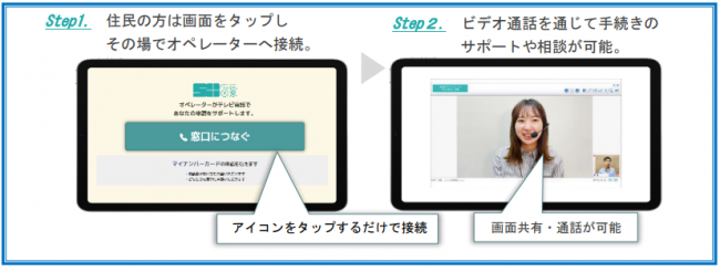 今回、マイナンバーカードのより一層の普及促進を図るため、9月5日(月)から対象の10店舗において、店内にあるモバイル端末を自身で操作しながらビデオ通話を使った専用オペレーターによる遠隔支援を受けることができる「札幌市マイナポイント手続きリモート支援窓口」を開設した。