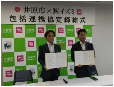 (株)イズミ(広島県広島市、山西泰明社長)は岡山県井原市(大舌勲市長)と9月21日(水)に地域の活性化および市民サービスの向上を図ることを目的に、包括連携協定を締結した。