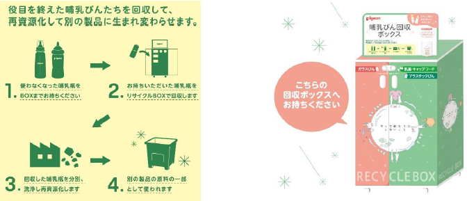 赤ちゃん本舗 (10店舗)では 8月25日(木)~11月30日(水)の期間、不要になったピジョンの哺乳器を回収し、再資源化できる取り組みを実施する。