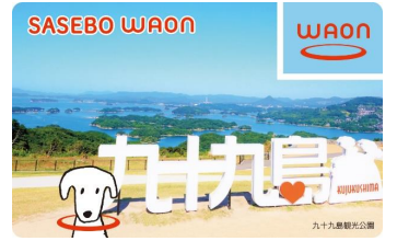 この協定の取り組みの一環として、イオンは10月25日から、ご当地WAON「SASEBO WAON」を発行する。カードの表面には、九十九島観光公園(佐世保市)の広大な芝生広場の「眺望の丘」から見た九十九島の美しい大パノラマをデザインする。