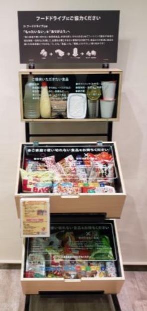 フードドライブ実施店舗には店内にオリジナルの常設用食品寄付ボックスを設置する。これまでに約3万1000点の食料品を、連携するフードバンク団体を通して支援が必要な子育て家庭や「子ども食堂」などの子育て支援団体、福祉施設、ひとり親世帯等に届けている。