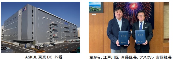 同協定の締結によってアスクルは、地震や台風等による災害が発生、または発生するおそれがある場合、江戸川区の要請に応じ、同区内の物流センター「ASKUL 東京 DC」および近隣の「DCMセンター(江東区)」、「DCM第 2 センター(板橋区)」の在庫品から生活必需品等必要物資を提供する。なお江戸川区臨海町の「ASKUL 東京 DC」は、洪水・高潮・津波などの水害リスクが低い高台エリアに立地している。