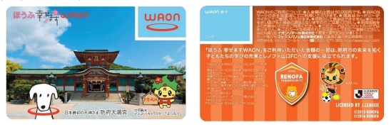 同社と山口県防府市、そしてプロサッカー「Jリーグ」に所属する(株)レノファ山口は2016年10月に、子育て支援や地産地消など11分野での相互連携を強化し、防府市の一層の地域活性化と市民サービスの向上を目的とした「地域創生、まちづくりパートナーシップ包括連携に関する協定」を締結した。その一環として2017年4月に「ほうふ幸せますWAON」を発行し、毎年当WAONの利用金額の一部を防府市とレノファ山口FCへ寄付している。