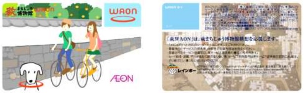 当社と萩市は2011年8月に「地域貢献連携協定」を締結し、その一環として「萩まちじゅう博物館WAON」を発行している。カードの表面には、夏みかんと萩城下町の土壁のまちなみのイラスト、裏面には“江戸時代の地図がそのままつかえるまち萩”を象徴する意味で古地図を配置している。2022年8月時点で約1万8300枚を発行している。