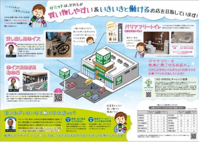今回サミットが受賞したチラシは、2021年8月24日に新聞折込し、サミットのバリアフリーと案内係の仕事について紹介したもの。「設備面のバリアフリー」と、案内係が買物の手伝いやコミュニケーションを行うことで生まれる「心のバリアフリー」で、安心して買物できる店舗であることを伝えている。