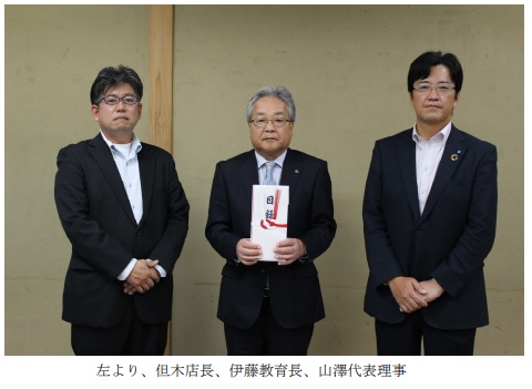 公益財団法人ヤマザワ教育振興基金(代表理事 山澤 廣)は11月11日(金)、横手市の小中学校へ教育機材購入資金として100万円を寄贈した。