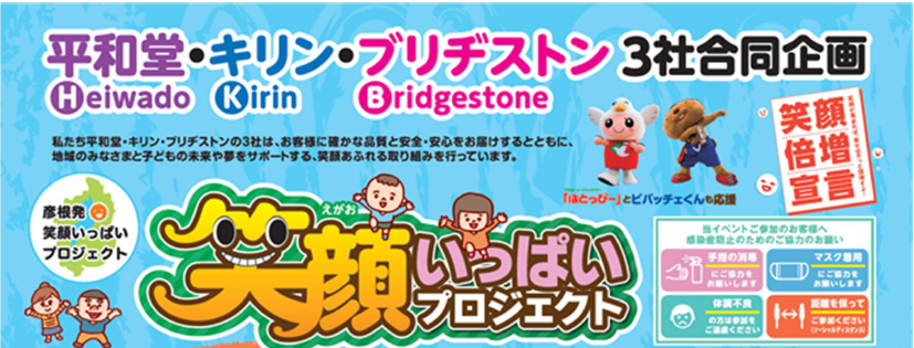 (株)平和堂(滋賀県彦根市、平松正嗣社長)は、キリンビール(株)(滋賀工場)、(株)ブリヂストン(彦根工場)と滋賀県彦根市に拠点を置く3社で、2014年に「彦根発、笑顔いっぱいプロジェクト」を立ち上げ、その活動の一環として、地域住民や地域の子どもたちの未来や夢をサポートする企画やイベントを開催している。