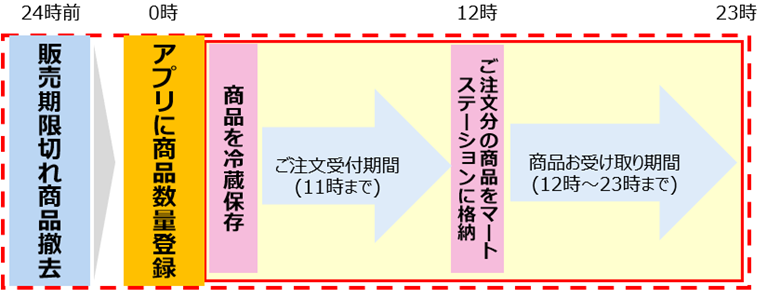 クックパッドマート会員からアプリ上で注文・決済が入り次第、同店舗内に設置している、クックパッドマートの商品受け取り用生鮮宅配ボックス「マートステーション」に格納する。購入者は「マートステーション」から商品を受け取るという仕組みだ。