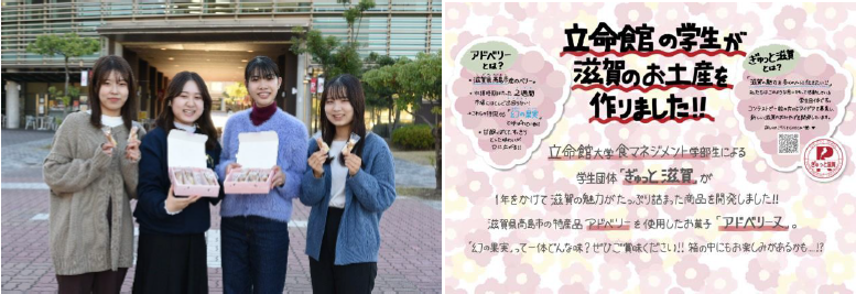 「ぎゅっと滋賀」は、食マネジメント学部生を中心に現在39人の学生で構成され、滋賀の歴史・文化について学びながら、滋賀の魅力を県内外に伝えるおみやげコンテストを実施したり、企画・開発する活動を展開している。2018年の夏から活動を開始し、2019年に滋賀の食材・特産品を使った菓子のアイデアを募集する「滋賀ぎゅっとおみやげコンテスト」を実施している。そのアイデアをもとに 2020年に滋賀県産ほうじ茶ガトーショコラ「シガトー」を商品化し、県内のホテルやスーパーマーケット、立命館大学生協などで数量限定販売した。この商品は大変好評で、翌2021年12月には再販売された。