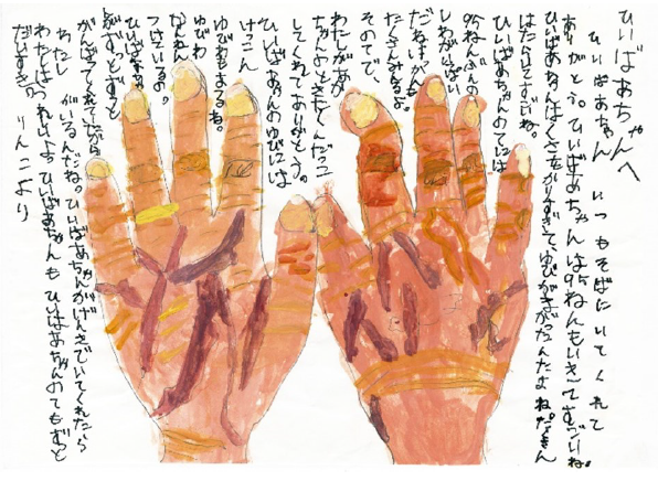 文部科学大臣賞は、各ブロックから選ばれた最優秀作品賞の中から、広島県東広島市立郷田小学校1年生の小玉倫子さんの「曾祖母の手をテーマに、祖父母の生きてきた道のりが今の自分につながっていること」への感謝を綴った作品に決定した。小玉さんには文部科学大臣賞の表彰状と賞品が授与される。