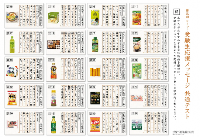 サミット(株)(東京都杉並区、服部哲也社長)は、受験生を楽しく応援する企画として、メーカー40社の協力のもと、「第三回 サミット 受験生応援メッセージ共通テスト」を行った。