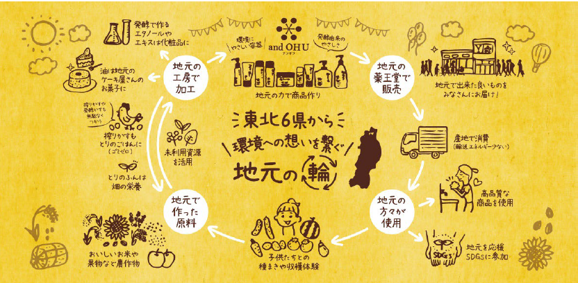 「and OHU(アンオフ)」は薬王堂ホールディングスグループと、岩手県奥州市にラボを持ち独自の発酵技術で未利用資源を再生・循環させる社会を構築する研究開発型スタートアップのファーメンステーションが共同開発したコスメ。東北の自然素材や副産物などの未利用資源をアップサイクルした素材を使い、発酵由来の機能性豊かな原料を抽出した。生産工程で出る発酵粕も無駄なく使う取り組みなど、環境に配慮したモノづくりから誕生した。