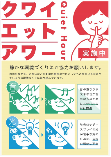 クワイエットアワーとは、店舗における音や光、においなどが原因で「買物に行けない。行けても苦痛。我慢している」などという感覚が過敏な人たちに配慮し、一時的に音や光、においの刺激を緩和する取り組み。2022年10月の東林間店(相模原市)に続き、2回目の実施となる。