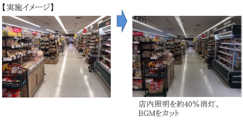 •店内の照明の部分的な消灯(全般照明の約40%消灯)