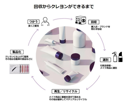 回収したメイク用品は、アップサイクルプロジェクト「COSME no IPPO」を通して、2023年夏以降に「クレヨン」として生まれ変わり、髙島屋で披露する。