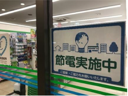 全国の約1万6500店舗で、2022年6月から継続して実施している。店内ATM看板、店内イートイン、店外殺虫機の電源や一部照明の消灯も実施している。