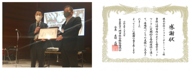 (株)ライフコーポレーション(大阪本社:大阪市淀川区、東京本社:東京都台東区、岩崎高治社長)は、「堺市内の子ども食堂への食品寄付」に関して、堺市社会福祉協議会から感謝状を受領した。
