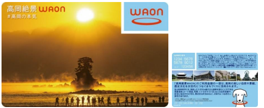 また、全国約115万カ所のWAON加盟店で「高岡絶景WAON」を利用すると、その売上金額の一部をイオンが高岡市に寄付し、高岡市は高岡の美しい自然や景観、歴史文化を次世代につなぐまちづくりに活用する。