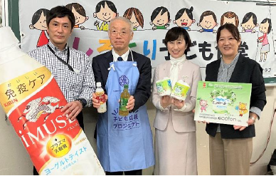 こども食堂は、全国に7300カ所以上あり、子どもが一人で行ける無料または低額の食堂。子どもだけでなく幅広い世代の人たちのための居場所として、孤食の解消や地域の交流の場づくりなどの役割を担っている。昨年、ユニーとキリンは「子どもたちの未来を応援しよう」をスローガンに、アピタ・ピアゴ・ユーストアで「キリン生茶」1本購入ごとに1円を寄付するキャンペーンを実施した。集まった 59万3513円を認定NPO法人全国こども食堂支援センター「むすびえ」に贈呈した。