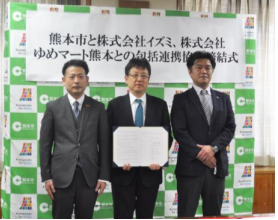 (株)イズミ(広島県広島市、山西泰明社長)は3月29日(水)、熊本県熊本市(大西一史市長)、(株)ゆめマート熊本(藤木淳社長)と、地域全体の活性化および市民サービスの向上を図ることを目的に、包括連携協定を締結した。