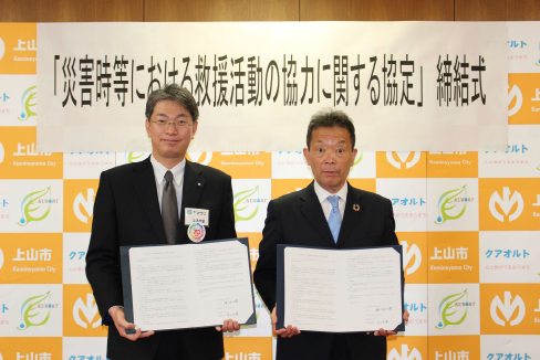 流通スーパーニュース > CSR > ヤマザワnews|上山市と「災害時等における救援活動の協力に関する協定」締結 ヤマザワnews|上山市と「災害時等における救援活動の協力に関する協定」締結 CSR / 2023年04月10日 ツイート (株)ヤマザワ(山形県山形市、古⼭利昭社長)は4月5日(水)、山形県上山市(横戸長兵衛市長)と「災害時等における救援活動の協力に関する協定」を締結した。 主な協定内容は次の通り。 災害時において 1.飲料水、食料および生活必需品の提供 2.市などの災害情報を店舗における情報発信 3.店舗駐車場を一時的な避難場所として提供 ツイート