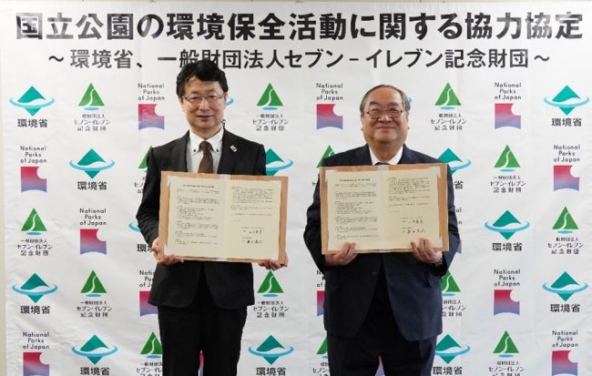 (一財)セブン‐イレブン記念財団(東京都千代田区、山本憲司理事長)は、環境省自然環境局および地域の活動団体とともに国立公園の環境保全活動に協働で取り組むことを目的とした、『国立公園の環境保全活動に関する協力協定書』を4月7日(金)に環境省自然環境局と締結した。