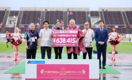 4月15日(土)のFC琉球ホームゲームでは、こども食堂を利用するこどもたち等100人を試合に招待し寄付金贈呈式を行った。