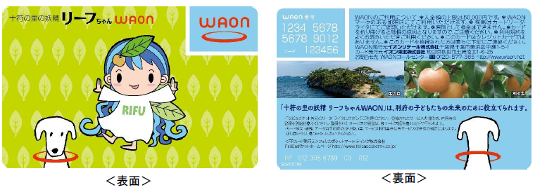 また、全国約117万カ所のWAON加盟店で「十符の里の妖精リーフちゃんWAON」を利用すると、その売上金額の一部をイオンが利府町に寄付し、利府町は未来を担う子どもたちのために活用する。