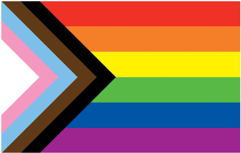 プログレス・プライド・フラッグは、2018年にアーティストのダニエル・クエーサー氏がデザインしたもの。インクルージョンについて、よりわかりやすくするために、この旗ではあらゆる人種のLGBT+コミュニティをブラックとブラウンのストライプで、またトランスジェンダーのプライドをピンク、ライトブルー、ホワイトで表現している。