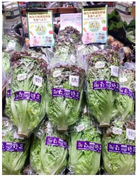この野菜は、そうてつローゼン店内で発生した野菜くずなどを堆肥化し、その堆肥を使って育てたもの。本来、生ごみとして処理する残渣を、(株)アクト・エア(神奈川県愛甲郡、冨岡康則代表)が回収、堆肥化し、その堆肥を使って神奈川県内の湘南青果(株)(藤沢市、原田篤代表)の専用農場で野菜を育てている。