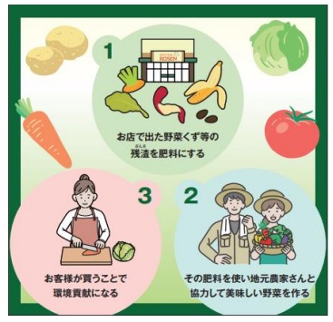 同社ではSDGsの取り組みとして、廃棄される残渣を堆肥化することで環境保全と環境負荷の低減に配慮し、持続可能な社会の実現への貢献を行う。神奈川県内の農場で野菜を育てるため、地産地消で鮮度が良く、安全安心な野菜として販売する。