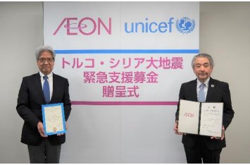 イオンでは2月27日から3月12日までの期間、全国のグループ店舗などで『トルコ・シリア大地震緊急支援募金』を実施した。顧客から寄せられた募金にイオンからの支援金を加えた金額を寄付した。