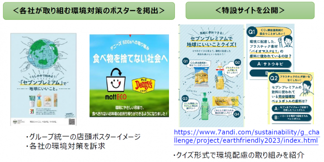 「セブンプレミアム」において品質と環境配慮の両立を目指した商品開発の取り組みをアピールする。環境配慮のポイントを訴求した共通 POP や店頭ポスターを、セブン-イレブン、イトーヨーカドー、ヨーク、ヨークベニマルのグループ4社約2万1800店で展開する。グループ共通の環境配慮POPは初のケース。特設サイトも公開する。