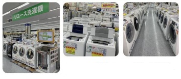 「ヤマダデンキ テックランド」で、新品の家電とリユース家電をあわせて取り扱うことで、幅広い品揃えのなかから顧客のニーズに応じて商品を選ぶことが可能になる。リユース家電は、2年間の保証付き、さらに、新品販売当時と比べて価格が約三分の一となる。高品質の家電製品が割安で購入し、使用できることから好評を得ている。
