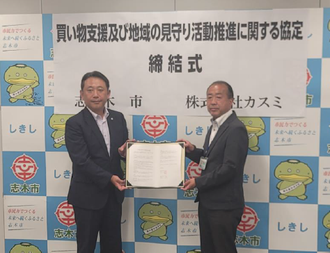 (株)カスミ(茨城県つくば市、山本慎一郎社長)は、移動販売をはじめとした買物支援策を実施することにより、買物に不便を感じている人々を支援するとともに、地域の見守り活動を推進するため、7月12日(水)に志木市(香川武文市長) と「買い物支援と地域の見守り活動推進に関する協定」を締結した。