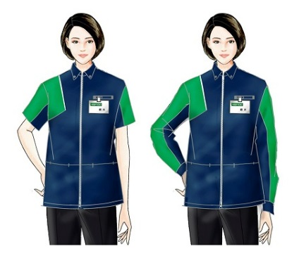 年々気温が高くなるなか、夏場の働きやすさを重視し半袖制服を新たに導入する。また、デザインも刷新しコーポレートカラーであるグリーンに加え、新たに誠実さを表現するネイビーを配色した。