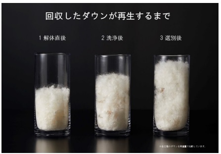 ⽻⽑は、洗浄し、適切な処理をすれば再活⽤できる。ニトリは、この取り組みで回収した⽻⽑を循環させ、製造⼯程における新たな⽻⽑の使⽤量を減らし、限りある資源を守っていく。