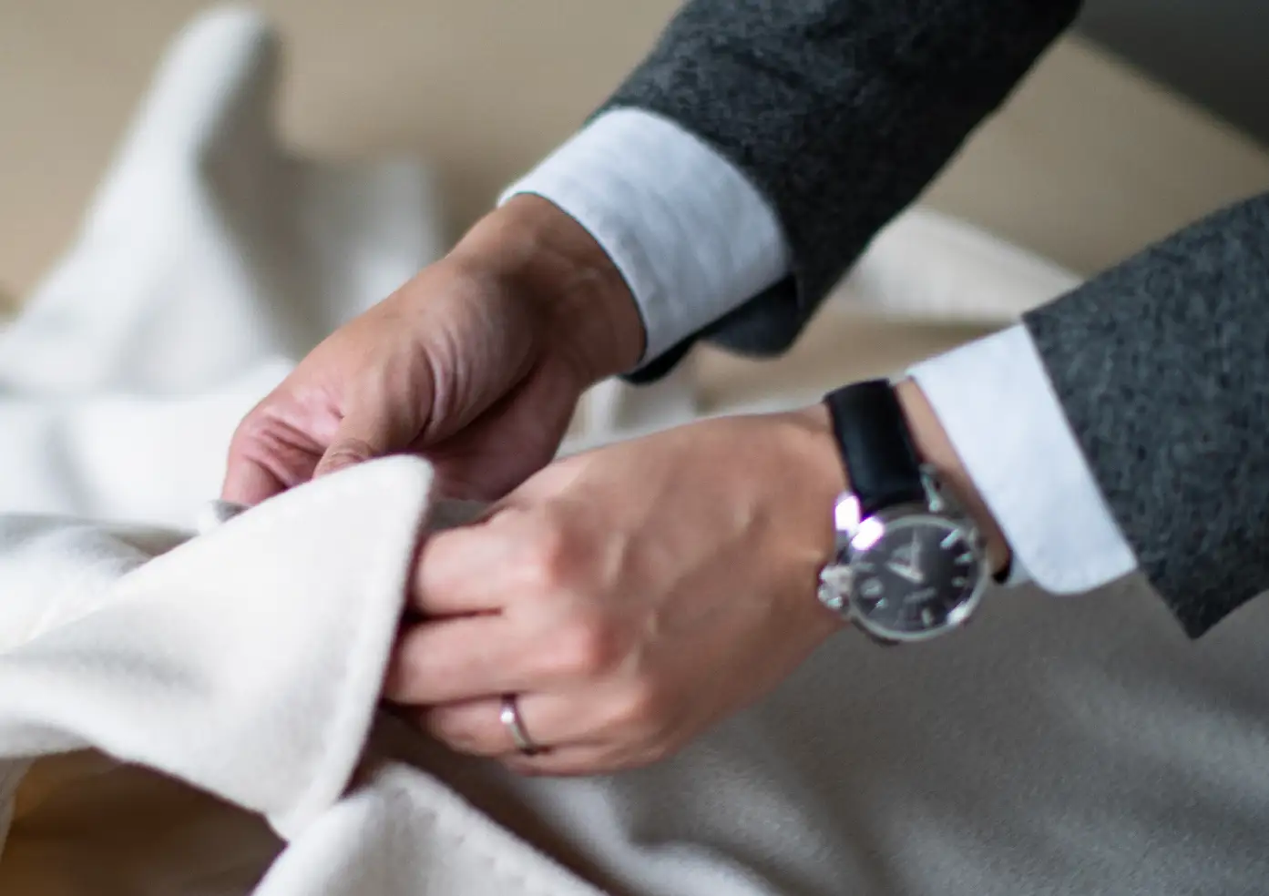 不要になった衣類を店舗に持ち込むと、査定士がその場で衣類の査定を行い、買い取りをする。対象商品は、紳士スーツ、紳士ジャケット、紳士パンツ、紳士コート、紳士靴、婦人スーツ、婦人ジャケット、婦人パンツ、婦人コート、婦人靴など。対象ブランドは問わないが、持ち込みは一人10点までとしている。