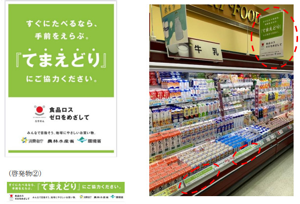 「てまえどり」は消費者庁・農林水産省・環境省の3省庁が推奨する取り組み。ラルズと東光ストアでは、従来店頭に掲示していた「てまえどり」啓発物を、消費期限や賞味期限が比較的短い商品が多い豆腐や牛乳、パンなどのコーナーに増設することで、お客へ食品ロス削減への協力をアピールする。この掲示は10月1日~31日の期間、売場に設置される。