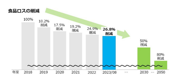 ファミリーマートでは、2020年2月に環境に関する中長期目標「ファミマecoビジョン2050」を制定している。「温室効果ガス(CO2排出量)の削減」「プラスチック対策」「食品ロス削減」の3つのテーマを掲げて取り組んでいる。また、それぞれのテーマに数値目標を設定していて、「食品ロス削減」は店舗における食品ロスの削減を、2018年対比で2030年に50%削減、2050年に80%削減することを目標としている。