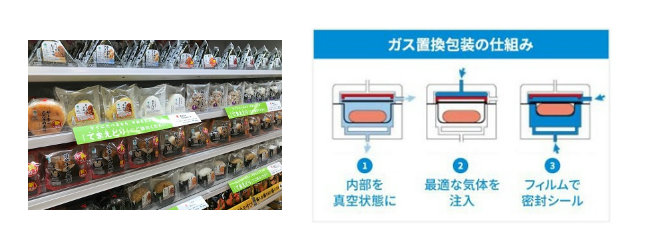 また、陳列棚の手前にある販売期限が短い商品から取る「てまえどり」や、惣菜やサラダなど、特殊な包装技術でガス置換方式を採用し、消費期限を1日~3日延ばす「ロングライフ化」の取り組みも進んでいる。