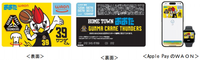 同協定の取り組みの一環として、イオンは11月8日にご当地WAON「おおたWAON」の発行を開始する。カードには、太田市を本拠とするバスケットボールのBリーグ「群馬クレインサンダーズ」の公式マスコットキャラクター「サンダくん」がデザインされる。裏面には売上金額の一部がスポーツ振興に役立てられることが記載されている。