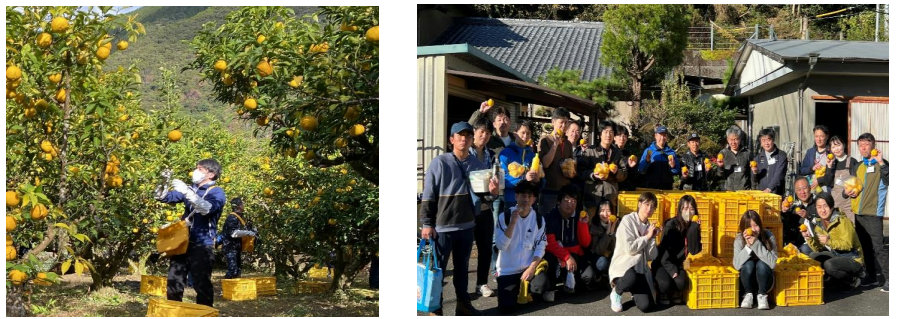 高知県北川村は日本有数のゆずの産地だが、人口減少、ゆず農家の高齢化や後継者問題などの課題を抱えていて、人手不足で収穫時期に実を獲りきれない年もあったことから、両社はゆず果実の収穫支援を実施してきた。