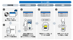 (株)ローソン(東京都品川区、竹増貞信社長)は、使用済み紙パックの回収促進を目指し、店頭での回収に協力した顧客に割引クーポンを配信することで回収の循環を創出する実証実験を開始する。11月30日(木)から東京都内の3店舗で実施する。現在の日本のリサイクル市場において、牛乳パックの回収率は約3割程度に留まっている。